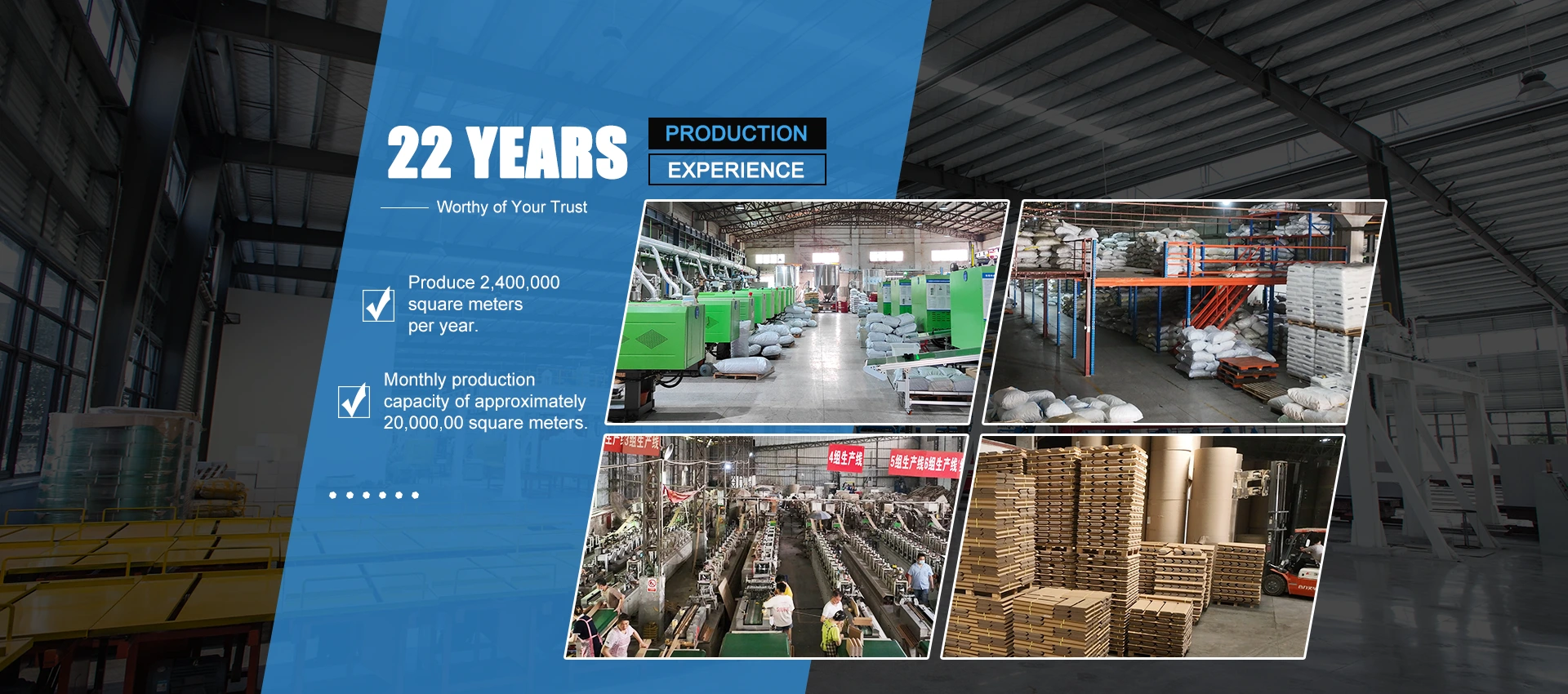 166,50平方メートルを超える工場スペースと月産生産能力約20,000,000平方メートルにより、年間2,400,000平方メートルの生産が可能です。
